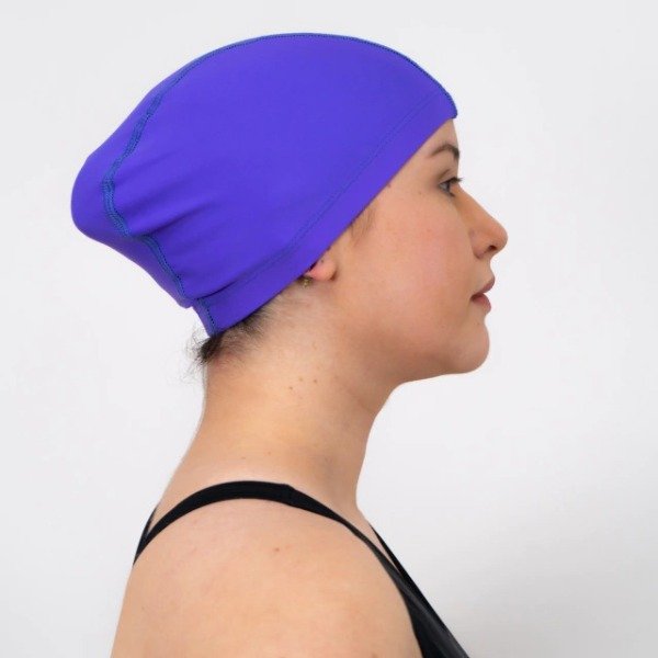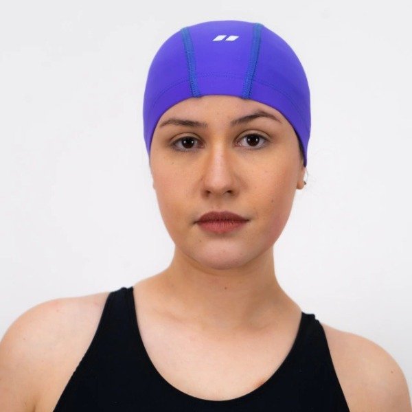 Gorra para natación fabricada de poliéster con elastano.